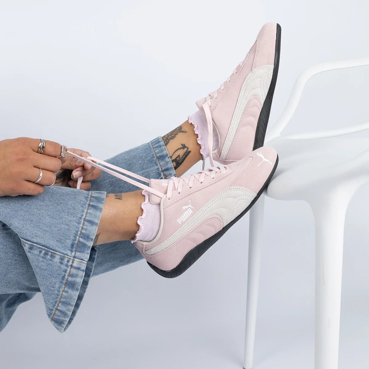 PUMA Speedcat OG Whisp of Pink / White The PUMA Speedcat OG Whisp of Pink / White softens its motorsport-inspired silhouette with a gentle light pink suede, accented by crisp white detailing. A refreshed classic that blends racing heritage with a light, stylish touch.
